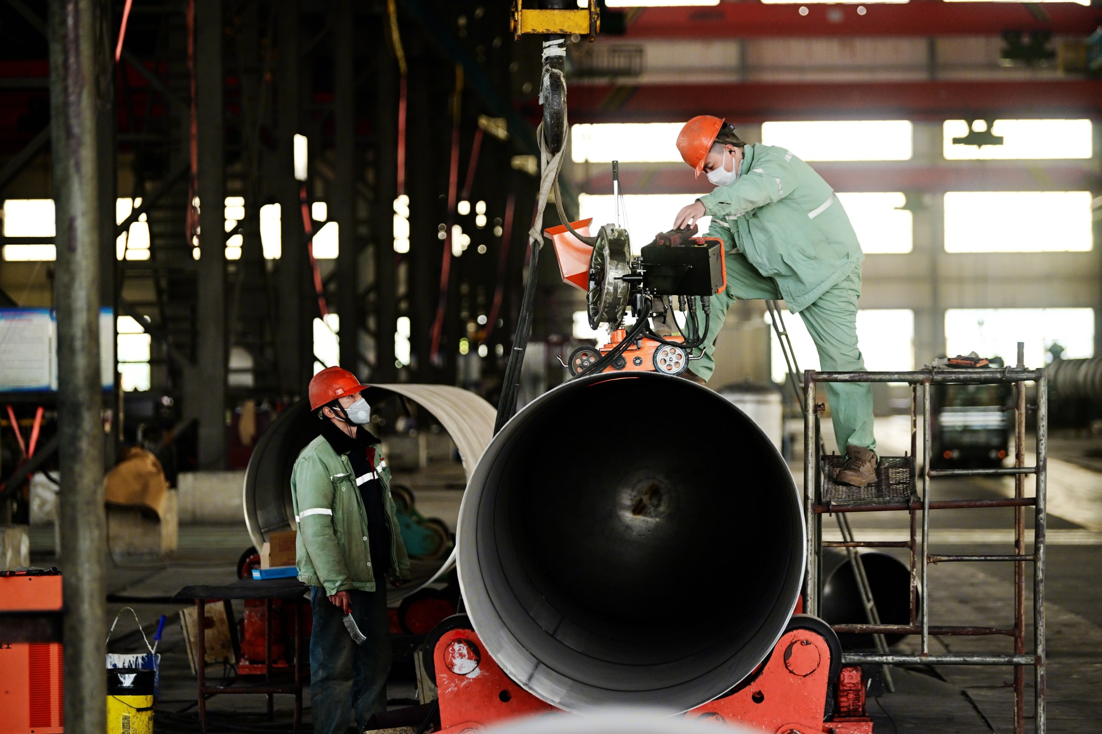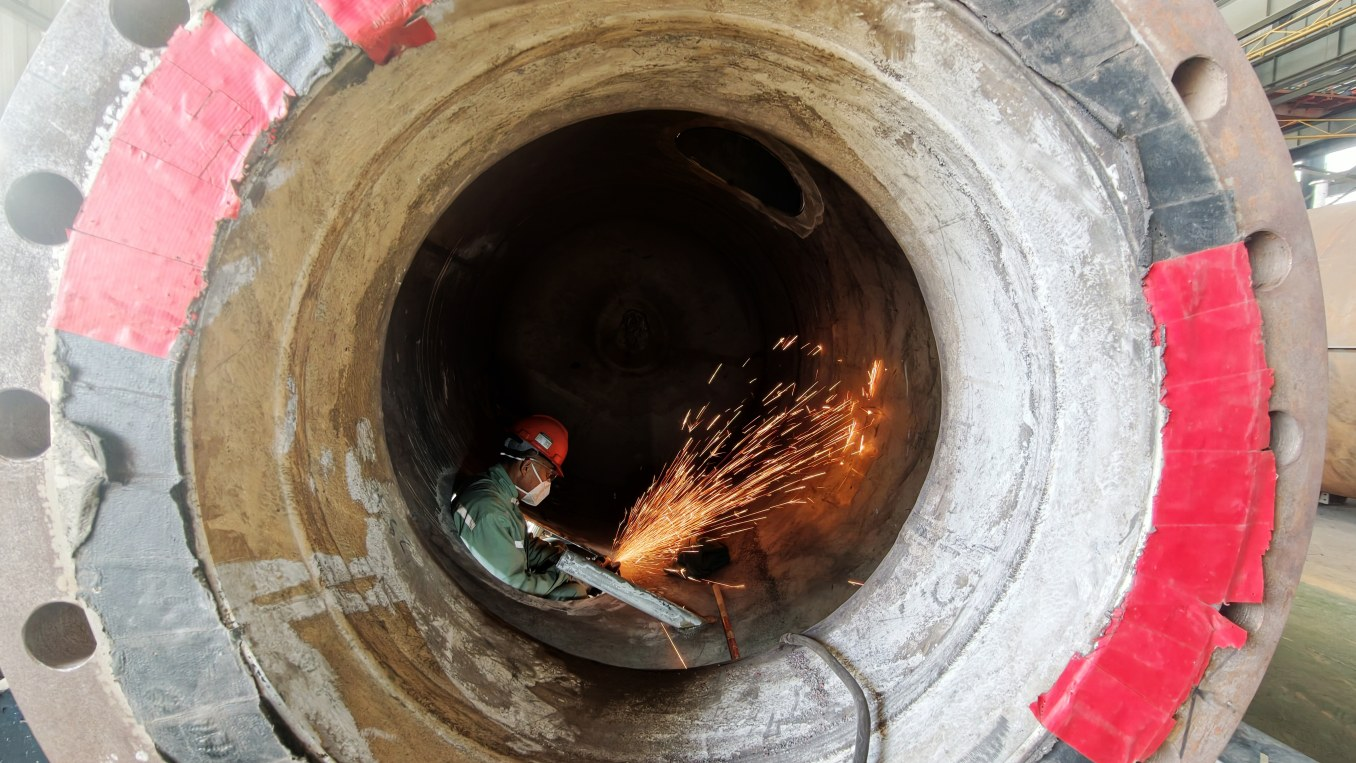 目前,我市各企业开足马力抓生产、抢效率、赶订单,决战“收官月”,力争“全年红”。图为江苏华兴压力容器有限公司车间内,工人在加工客户定制的塔器等压力容器产品,确保顺利交付。